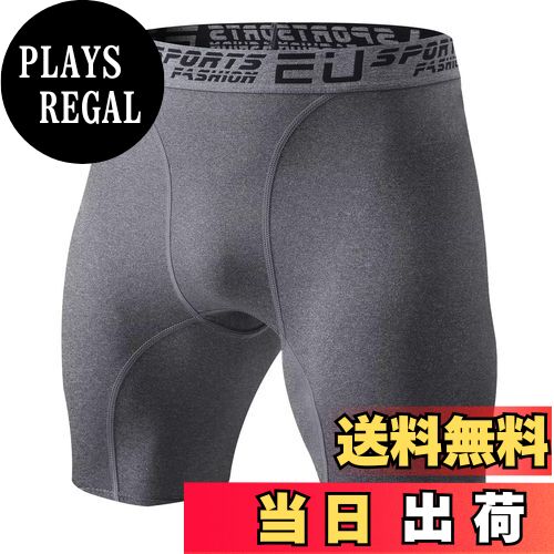 【送料無料】[THREEGUN] コンプレッションショーツ メンズ スポーツ ショート タイツ 着圧パンツ スパッツ パワーストレッチ ランニング アンダーパンツ 冷感 通気 吸湿 速乾 色:グレー、サイズ:3XL