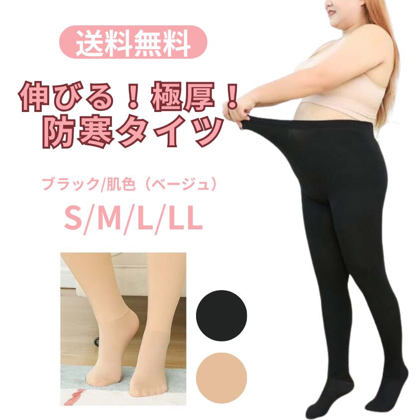 伸びる!もこもこ極厚裏起毛タイツ フェイクタイツ 2色4サイズ 【L/XL/2XL/3XL】大きいサイズ 肌色肌色 ブラック 着圧 ハイウエスト 裏起毛 マタニティタイツ
