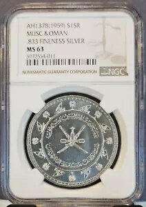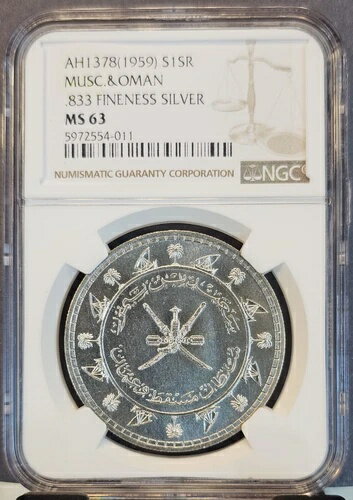 1959年 マスカット&オマーン シルバー 1 リアル サイード・ビン・タイムール NGC MS 63 美しい 833 シルバー