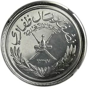 マスカット&オマーン 1/2 リアル AH1367 (1948)、NGC PF63、「サイード・イブン・タイムール (1932 - 1970)」