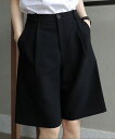 【クーポン利用で→2,848円】ハイウエスト タックショートパンツ ma 【即納】 ボトムス ショート丈 Aライン ワイドパンツ 短パン サイドチャック ワイドレッグ ソリッド ミニ ハーフパンツ レディース 韓国 プチプラ トレンド 人気 シンプル