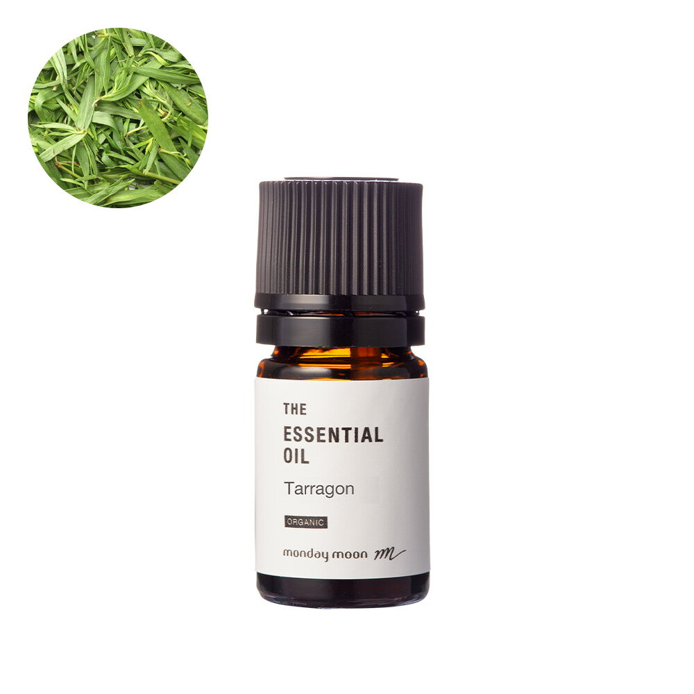 - エッセンシャルオイルタラゴン・エッセンシャルオイル・オーガニック/5ml(有機栽培・Organic)マンデイムーンのタラゴン・エッセンシャルオイル・オーガニックは、アルテミシアドランクルスハーブの葉から抽出しました。別名、エストラゴン、リトルドラゴンとも呼ばれています。ユーラシアと北アメリカの大部分に野生で広く分布しており、料理や薬用に栽培されている植物で、植物学ではArtemisia dracunculusとして知られ、ラテン語でdracunculusは小さなドラゴンを意味します。古くから様々な病気に対して作用するとされ、ハーブの王様と呼ばれています。●香りについて甘く、アニスのようなスパイシーさと、ほんのりとグリーンハーブを感じる香り。●ご使用シーン心を深く落ち着け、官能的でロマンチックなムードを高めます。寝室などのリラックス効果を求める場所での芳香浴がおすすめです。また、化粧品の成分としても評価されているハーブで、肌の健康と輝きを高める効果があると言われています。マンデイムーンのこだわり(公社)日本アロマ環境協会が定める表示基準に適合し認定された精油です。使用方法キャリアオイルに1%以下の本品を加えて、マッサージオイルや美容オイル、クリームをおつくりいただけます。水酸化レシチンでエッセンシャルオイルを希釈すると、エッセンシャルオイルを水に混ぜることができます。芳香浴として、またバスオイル、入浴剤、キャンドルなどにご利用いただけます。レシピNOTEをご覧ください。美容オイル(バター)の作り方オイル50mlまたはバター50gに本品を0.1-0.5ml加えてください。送料について■3980円以上で送料無料(沖縄・離島は9800円以上)→配送方法はお選びいただけません。→基本的にメール便でお送りします。■宅配便をご指定の場合→3980円以上送料無料対象外になります。→送料500円(沖縄・離島は1300円)を別途いただきます→カート画面の備考「宅配便希望」欄に【●】をつけてください他のサイズはこちらをクリックテスター5ml30mlドロッパーガラスボトル(箱入り)でお届けします。 商品詳細栽培方法有機栽培品質保存料/無添加着色料/無添加学名Artemisia dracunculus科名キク科抽出部位葉抽出方法水蒸気蒸留法原産国フランス香り甘く爽やかなハーブ調の香り揮発速度ミドルノート色ほぼ透明粘度ランク1:立て続けに滴下するくらいさらっとしている。可溶性油溶性配合量0.2%-1% 日中使用の可否○保存方法冷暗所保存期間開封前12ヵ月開封後はお早めにお使いください。こんな方に 乾燥肌 敏感肌 オイリー肌 ヘアケア 地肌ケア 抜け毛 薄毛 美髪 リフレッシュ 気分転換 集中 記憶力ストレス イライラ更年期 更年期 認知症 オススメシーンストーン アロマスプレー ディフューザー アロマディフューザー スプレー アロマグッズ エッセンシャル オイル ルームフレグランス フレグランス フレグランスミスト ピローミスト 精油 天然精油 ナチュラル ボトル 小分け 瓶 部屋 香り お風呂 加湿器 加湿器用 キャップ 香水 マッサージ 車 空気清浄機 リラックス 収納 リフレッシュ 気分転換 癒し 癒す 寝室 寝る前 部屋 部屋用 玄関 リビング 枕 衣類 マッサージ ヨガ ナイトルーティーン モーニングルーティーン朝 夜 アロマギフトにもオススメバースデー 誕生日バレンタインデー ホワイトデー 新生活 母の日 父の日 ギフトプレゼント クリスマスギフト プレゼント プチギフト ギフトギフトセット プレゼント 贈り物 お返しお礼 御礼 挨拶 退職 転勤 引越し 送別会 二次会 お年賀 内祝い お祝 ノベルティ 景品 記念品 粗品 還暦祝い 引越祝い 快気祝い 進学祝い 合格祝い 出産祝い 結婚祝い いい夫婦の日 昇進祝い 退職祝い お歳暮 お中元 敬老の日古希 喜寿 傘寿 卒寿関連ワード無添加コスメ オーガニック 美容オイル シンプルスキンケア 手作り コスメ国内製造 安全 安心 人気コスメ おしゃれコスメ 携帯コスメ 美容オイル 旅行用 持ち運び 原液コスメ 原液オイル アロマオイル 全身 顔 髪 ヘアケア フェイスケア ボディケア 男性 女性 男 女 ママ ママ友 友達 20代 30代 40代 50代 60代 70代 30歳 40歳 50歳 60歳 71歳ご注意本品は直接肌につけないでください。飲まないでください。床に落とす等、乱暴に取り扱わないでください。使用中、使用後に何らかの異常を感じた場合は使用をおやめください。妊婦・小児・高齢者は本品を使用前に医師に相談してください。精油が付着すると、素材によっては精油の色が落ちないことがあります。天然成分のためまれに濁りや沈殿物、色調の変化が生じる場合がありますが、品質には問題ありません。ガラス瓶の特性上、瓶の厚みが一定でない為、液面の高さに差が生じる場合があります。区分販売/広告文責mono株式会社(088-677-8724)