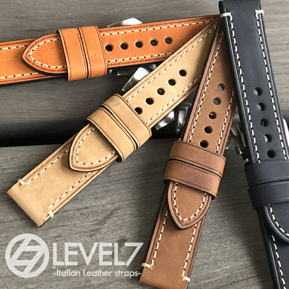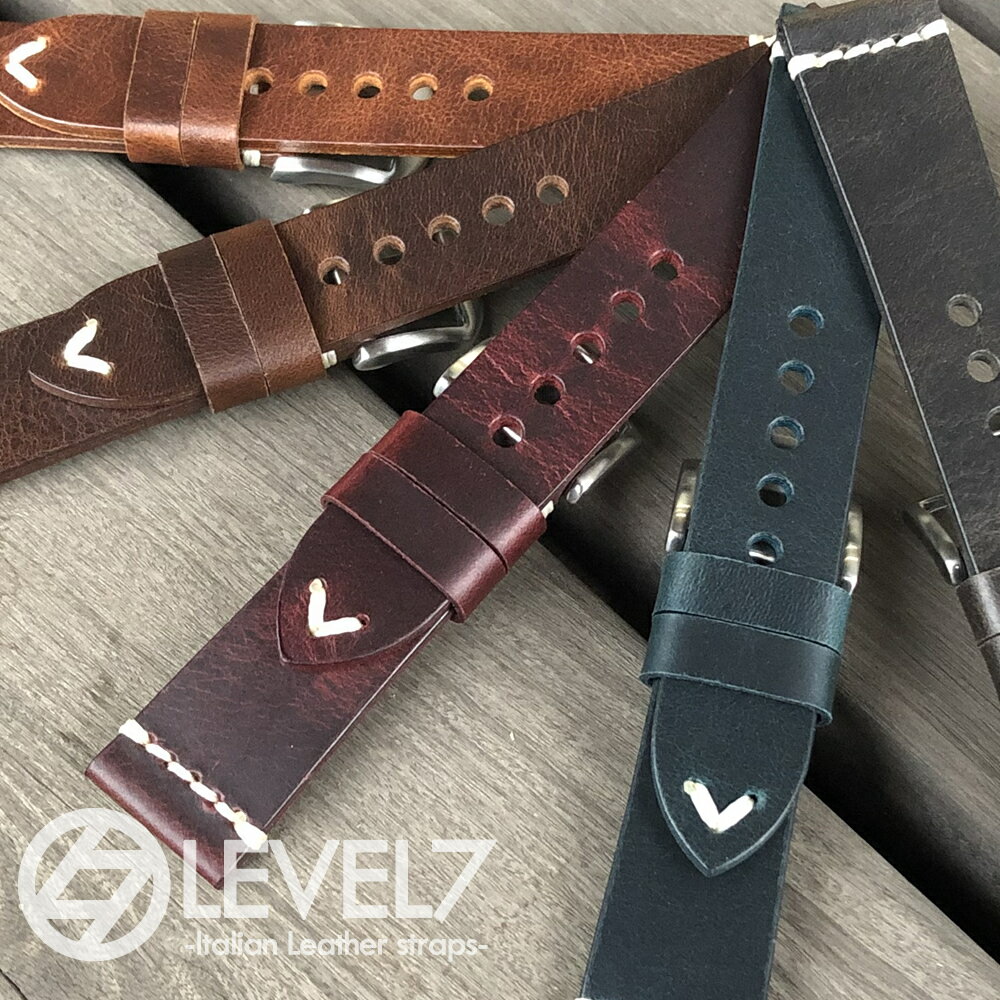 LEVEL7(レベルセブン)イタリアの大手タンナー『MPG社』製 イタリアンレザー/オイルヴィンテージ メンズウォッチ用レザー替えベルト 腕時計用ベルト パネライ、SEIKOなど、ダイバーズウッチから、ビジネスシーンまでどんなシーンでもあうオールマイティなレザーベルト