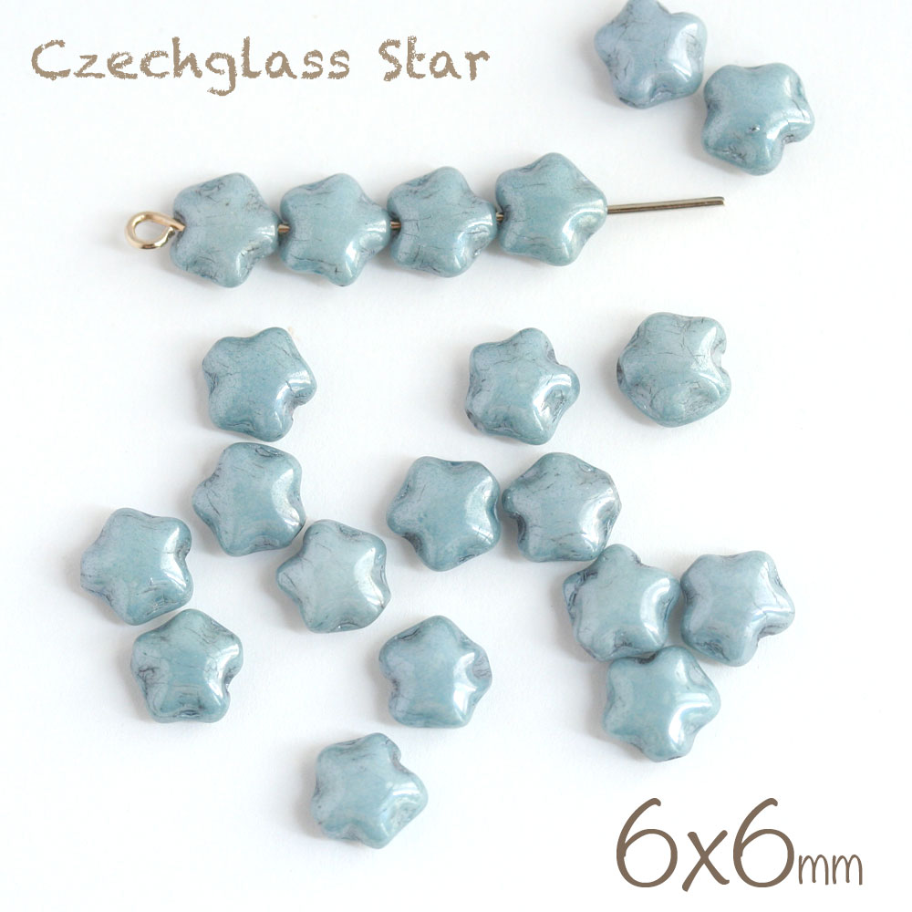 【最大15%OFFクーポン】チェコビーズ スター 6×6mm チョークホワイト ターコイズラスター 約20個 アクセサリーパーツ スターモチーフ水色 星 チェコガラス 可愛い かわいい 材料 素材 ハンドメイド パーツ ピアス