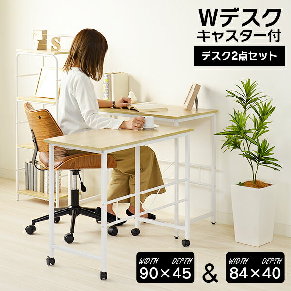 デスク 幅90cm・84cm 2点セット 机 PCデスク 学習机 キャスター付 スチール 北欧 ターブルW 広々使える 大きめ スペース大(代引不可)【送料無料】