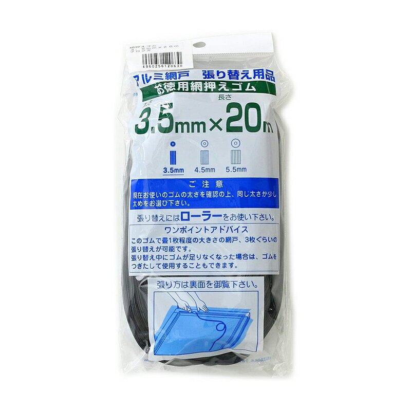 ●仕様 巾:5.5mm 長さ:20m 色:グレー アルミ網戸用網押えゴム。 無駄なく使える20m巻です。掃出し窓なら約3枚分。 まとめて張り替える方に便利です。 ※商品の改訂等により、パッケージデザイン・内容等は予告なく変更される場合がございます。 ※商品は自社店舗販売と在庫を共有しているため、在庫更新のタイミングにより、在庫切れの場合やむをえずキャンセルさせていただく可能性があります。●仕様 巾:5.5mm 長さ:20m 色:グレー アルミ網戸用網押えゴム。 無駄なく使える20m巻です。掃出し窓なら約3枚分。 まとめて張り替える方に便利です。 ※商品の改訂等により、パッケージデザイン・内容等は予告なく変更される場合がございます。 ※商品は自社店舗販売と在庫を共有しているため、在庫更新のタイミングにより、在庫切れの場合やむをえずキャンセルさせていただく可能性があります。