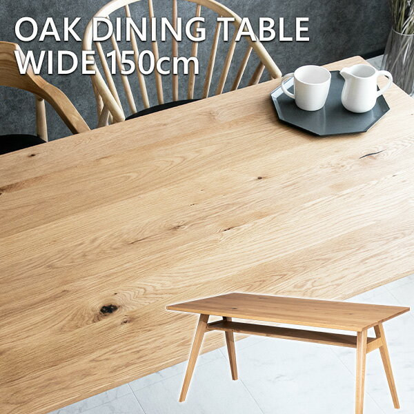 【送料無料】 ダイニングテーブル 単品 天然木 無垢 オーク 4人掛け ナチュラル ブラウン 茶 無垢材 棚板 収納 長方形 ウレタン塗装 食卓テーブル 机 モダン シンプル 北欧 おしゃれ 高級感 150cm