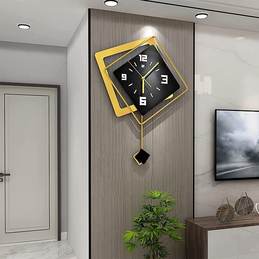 壁掛け時計 掛け時計 おしゃれ 北欧 デジタル壁時計 大きな静かな壁時計 モダンな壁掛け時計 振り子付き ダイヤモンド形時計 連続秒針 多機能 静かなクォーツ時計 自宅 寝室 時計 部屋飾り グリーン ブラック プレゼント ギフト 贈り物 送料無料