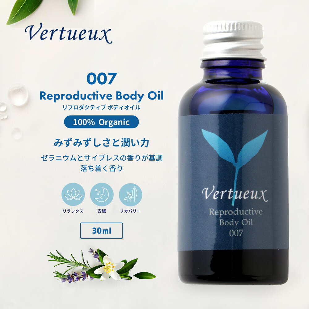 007 30ml リプロダクティブ ボディオイル アロマオイル 乾燥肌 敏感肌 乾燥対策 オーガニック エッセンシャルオイル 精油 女性 うるおい みずみずしさ ホルモンバランス クラリセージ ゼラニウムバーボン Vertueux 無添加