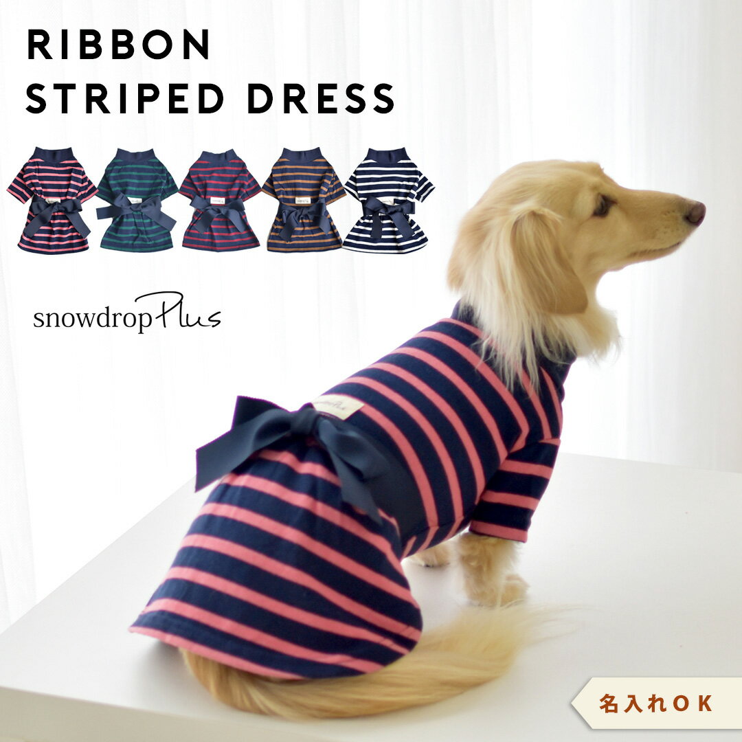 (在庫処分SALEの為返品交換不可)ダックスサイズ ボーダー オリジナル リボン 名入れ 刺繍ワンピース ロングスリーブ ストライプカット 長袖 犬 ドッグ 服 犬服 snowdrop ゆうパケット対応