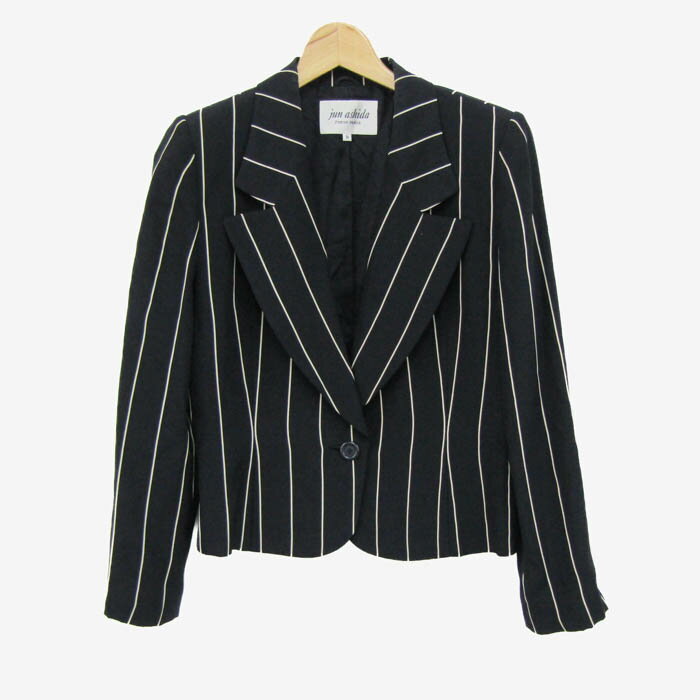 jun ashida ジュンアシダ テーラードジャケット アウター ショート丈 ストライプ柄 シルク100% レディース 9サイズ 黒×白 【中古】