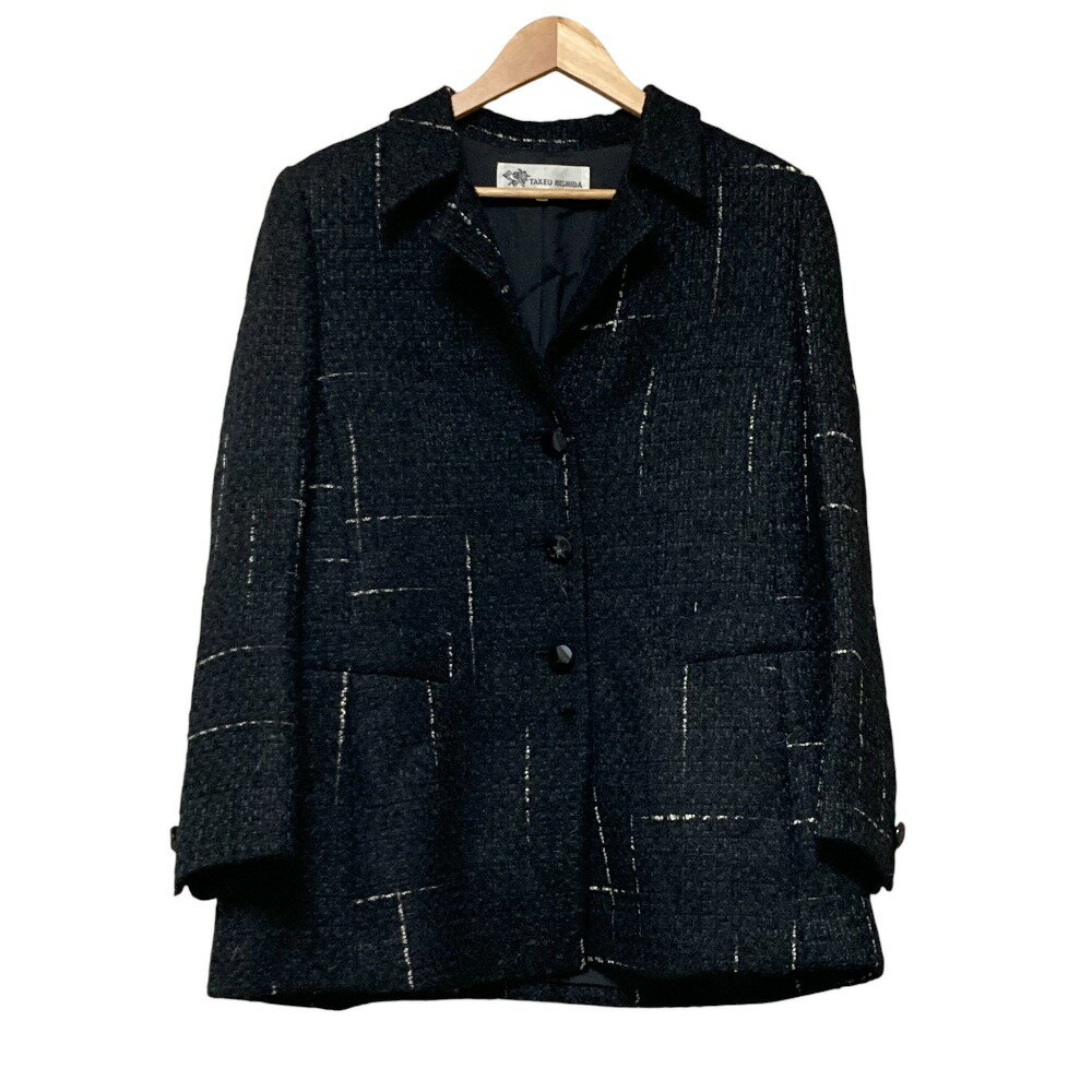【中古】美品 TAKEO NISHIDA タケオニシダ ツイードジャケットコート サイズ13 ブラック レディース Luxs ブランド古着のリュクス