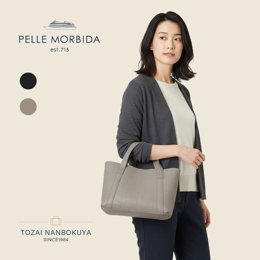 PELLE MORBIDA-ペッレモルビダ- PELLE MORBIDA(ペッレ モルビダ)は、“旅の理想形”として知られている船旅を楽しむ大人たち、“クオリティ オブ ライフ”を求める成熟した大人たちに向けて誕生しました。快適で優雅な船旅に持っていきたくなる上品で良質な製品たちは、長く愛着を持って使っていただけるよう、すべてにおいて厳選した素材を使用し、細部にまでこだわって丁寧に製作しています。時代や流行に流されるのではなく、バランスよく現代感覚を取り入れたグローバルスタンダードを追求。素材を活かすために、シンプルで使いやすく美しいデザインに……。耐久性や機能性も兼ね備えた、こだわりを持つ高品質の製品です。“さり気ない上質さ”を五感で感じてください。 ブランドページ>> ■ペッレモルビダ ブランド / テーラマリーナ シリーズ / トートバッグ 【pmo-te010】 ダブルフェイスレザーのトートバッグにA4サイズが登場 一枚仕立てのダブルフェイスレザーのトートバッグ。裏地、芯地を使わないことで軽やかさと革本来の自然なしなやかさが引き立つバッグ。A4サイズで大きすぎず小さすぎないちょうどよいサイズなので女性も重宝するユニセックスなデザインに仕上げました。 豊富なカラーバリエーションが特徴 落着きのある定番カラーから鮮やかで目が楽しくなるカラーまで全6色の展開。デイリー使いやビジネス使いなどで分けて持てる楽しさがあります。パートナーや家族と色違いで持つのもおすすめです。 Collection - Tela Marina(テーラマリーナ) 港町リボルノの海洋学校に展示されている、今でも独特の迫力とどこか懐古の情を感じさせる船の帆をイメージしたファブリックで仕上げた、軽快さとトラディショナルな上品さを表現したコレクションです。 スペック ブランド |ペッレモルビダ / PELLE MORBIDA シリーズ |テーラマリーナ / Tela Marina 品番 |pmo-te010 形状 |トートバッグ / TE010 外寸 |W360×H270×D155[mm] 持ち手 |長さ:500[mm] |高さ:230[mm] |太さ:20[mm] 重量 |約 750g 収納サイズ |A4ファイル 開閉部 |マグネットボタン式 内側仕様 |その他ポケット×1 本体素材 |牛革 生産国 |日本 / Made in Japan ▼ 関連商品を探す ▼ 「ペッレモルビダ」一覧はこちら > 「ペッレモルビダ トートバッグ」一覧はこちら > 「トートバッグ」一覧はこちら > ペッレモルビダ▼ 人気ランキング ▼ 当店人気No.1 当店人気No.2 ペッレモルビダの人気ツートップをご紹介。ペッレモルビダを知り尽くしたスタッフも納得のランクイン。ビジネスシーンではスーツ・ビジカジ問わず、デキる大人が持つに相応しい風格ある仕事用バッグ。カジュアルシーンでは、大人のキレイめスタイルに相性抜群。(集計:2024/4)