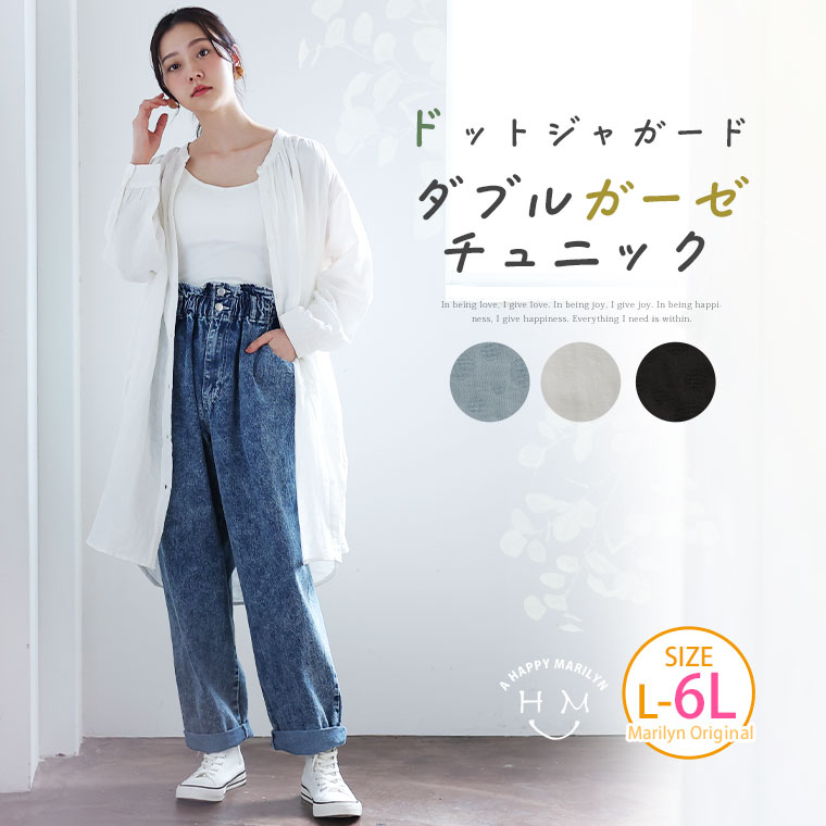 大きいサイズレディース トップス | ドット ジャガード ダブルガーゼ ギャザー チュニック _ プルオーバー LL 3L 4L 5L 6L 春 春物 春服 ぽっちゃり ゆったり ナチュラル コットン 綿 かわいい おしゃれ カジュアル ナチュラル プラスサイズ [3611007]