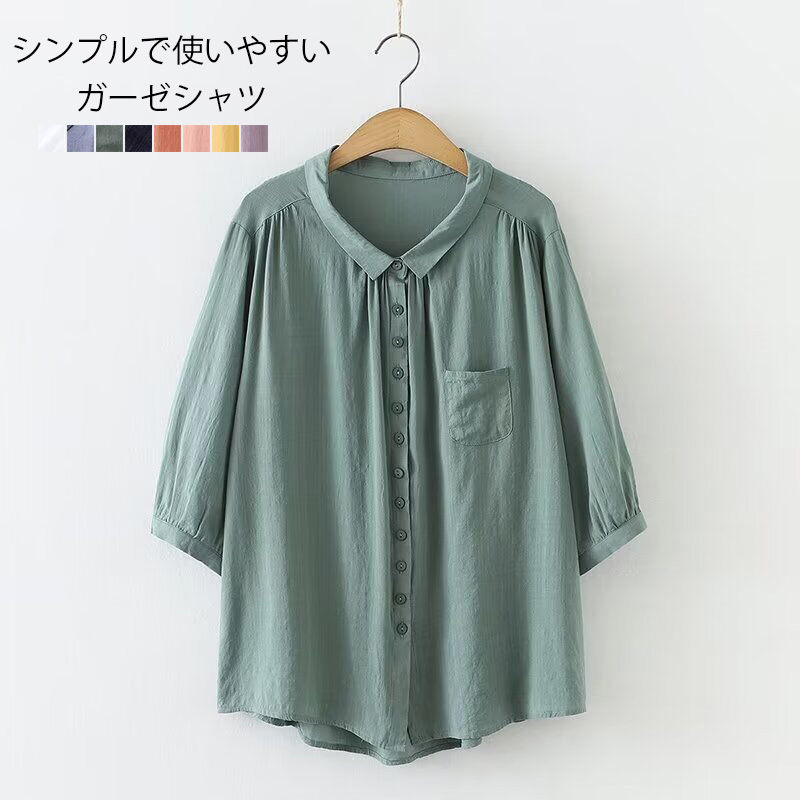 シャツ レディース ダブルガーゼ 長袖 5分袖 チュニック ブラウス 綿100% 秋 夏 ガーゼシャツ シャツブラウス ホワイトシャツ 白シャツ 羽織り 大きいサイズ トップス 前開き 折襟 体型カバー 春 無地 おしゃれ ゆったり カジュアル 大人 30代 40代 送料無料 【商品情報】 ■サイズ(cm) 表示サイズ:M/L 総 丈:65/66cm 肩 幅:40/41cm バ ス ト:114/120cm 袖長(5分袖):34/34cm 袖長(長袖):58/59cm ■カラー:5分袖6色あり/長袖5色あり ■備考 【素材】綿100% 【セット内容】トップス単品 【裏地】なし 【透け感】なし 【伸縮性】なし ※寸法は手測りなので若干誤差がございますが、ご了承くださいませ。 ※お品物の色合いは、写真撮影、パソコン画面表示等の環境の違いにより、若干異なる場合がございますので予めご了承くださいませ。