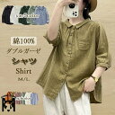 【2880円→実質2448円 P10+5%COUPON! 11/19 23:59迄】綿100% シャツ レディース 半袖 ダブルガーゼ ブラウス シャツブラウス ロング チュニック ブラウス 折襟 五分袖 ギャザー 綿100 カジュアル ナチュラル ゆったり トップス 体型カバー ガーゼ 大きいサイズ 春 夏