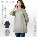 チュニック ダブルガーゼ 二重ガーゼ 綿100% 大人可愛い レディース きれいめ 春夏 コットン100% 敏感肌 乾燥肌 体型カバー 心地いいダブルガーゼギャザーチュニック M L LL 3L 大きいサイズ 大きめ ゆったり 50代 60代 70代 ミセス ファッション