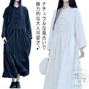 ダブルガーゼ ギャザー ワンピース シャツワンピース チャイナボタン チャイナ風 長袖 レディース 綿 Wガーゼ コットン ナチュラル きれいめ カジュアル ホワイト ブラック 春 夏