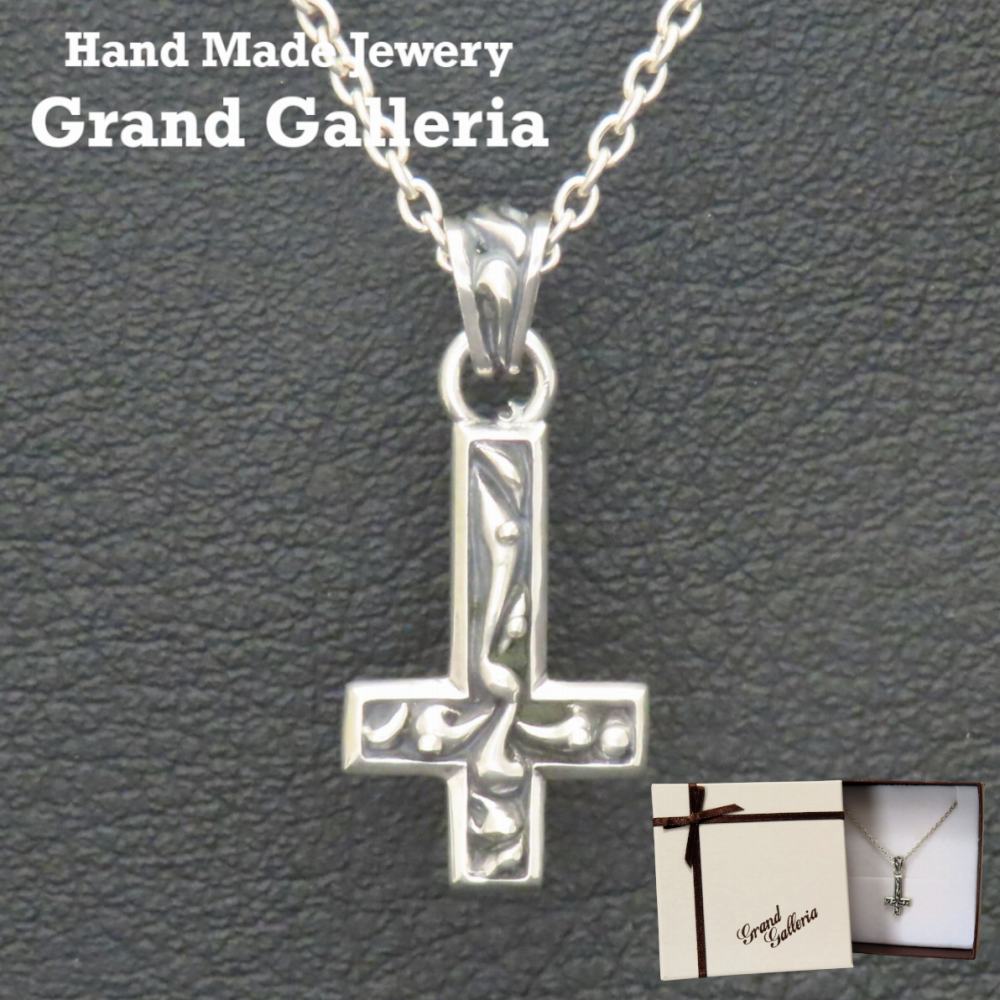 逆十字ネックレス シルバー925 【刻印無料】 聖ペテロ ペテロクロス 十字架 ネックレス ペンダント シルバーアクセサリー メンズ キリスト教 カトリック ローマ教皇 クリスマス 誕生日 プレゼント ハンドメイド 彫金 ジュエリーボックス 箱 Grand Galleria グランドガレリア