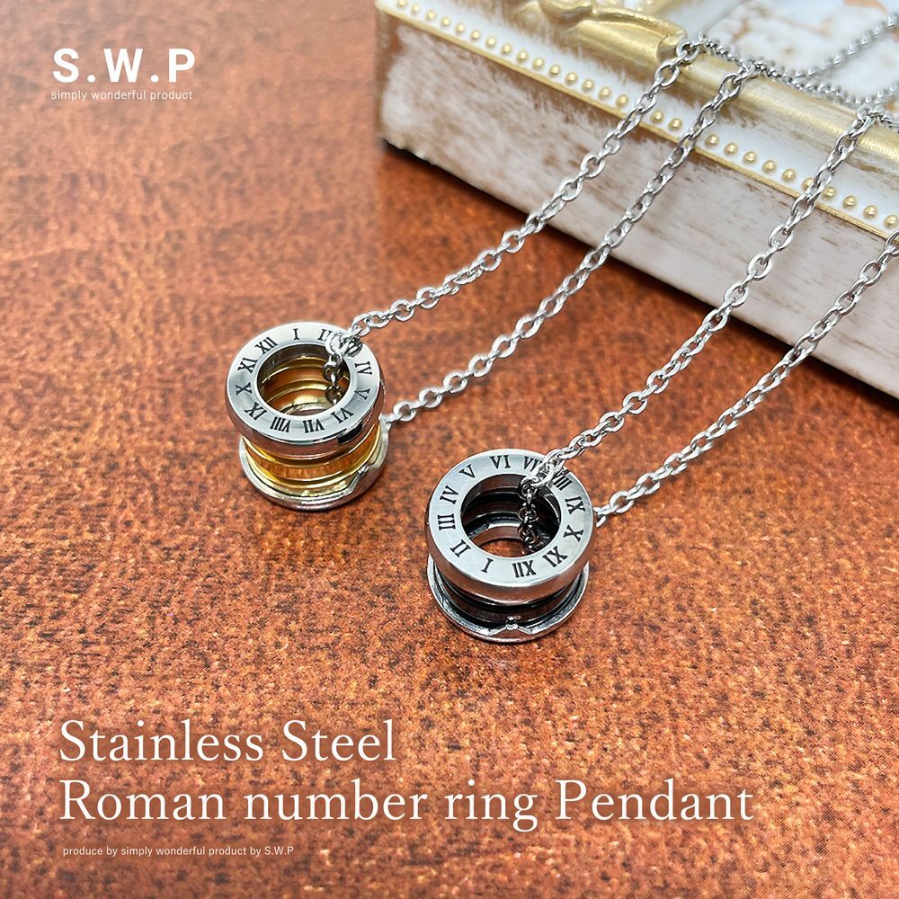ステンレスネックレス ステンレスペンダント リング シリンダー ローマ数字 LOVE メンズ レディース アクセサリー シンプル 存在感 高級感 ネックレス ペンダント