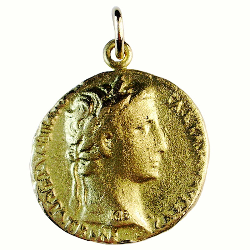 古代ローマ帝国の栄華を象徴するアウグストウス帝アンティークコインを 国内の職人がキャストから仕上げまで再現、贅沢に仕上げたペンダント 両面に刻まれた皇帝とローマ神の姿が時を超えて語りかけてくるような逸品です。 当店では金相場が高騰する中でも品質と輝きを守りお客様に満足いただけるよう丁寧に仕上げています。 K18, K10 お好みの素材で選べます。 デザインの違いはございません。 デザインの特徴 表面は アウグストウス帝の肖像 裏面にはローマ神 ガイウスとルキウスが彫刻されています 両面デザインなので気分に合わせて表裏のデザインを楽しめます。 アウグストウス帝ペンダントサイズ 1.5cm×1.5cm バチカン内径 4mm×2mm 重量 K18=約 2.9g K10=約2.3g 素材 K18, K10 チェーンは付きません 写真モデル 身長 178cm 日本製 アウグストウス帝(BC27-AD14)は、志半ばで倒れた養父 カエサルの後を継いで内乱を勝ち抜き地中海世界を統一 して帝政を創生し、ローマの平和を実現しました。 チェーン付ネックレスをご購入ご希望のお客様 18金 アンティーク ローマ アウグストウス帝ネックレス