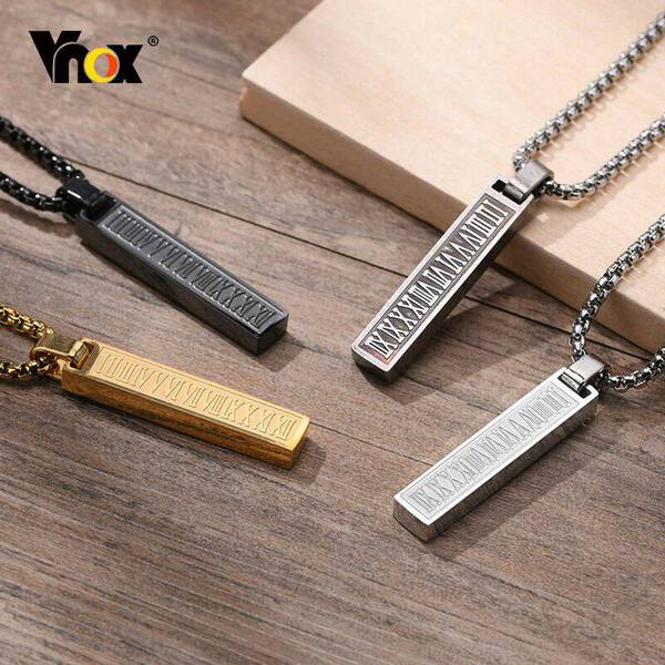 【送料無料】 ペンダント ネックレス レース メンズ 男性 ローマ 数字 ナンバー バー 垂直 幾何学 刻印 チャーム 24インチ ボックス チェーン垂直 バーティカル
