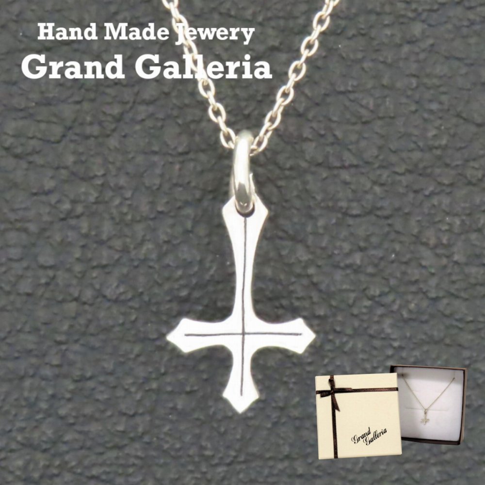 逆十字ネックレス S シルバー925 【刻印無料】 聖ペテロ ペテロクロス 十字架 ペンダント シルバーアクセサリー メンズ キリスト教 カトリック ローマ教皇 クリスマス 誕生日 プレゼント ハンドメイド 彫金 ジュエリーボックス 箱入り Grand Galleria グランドガレリア