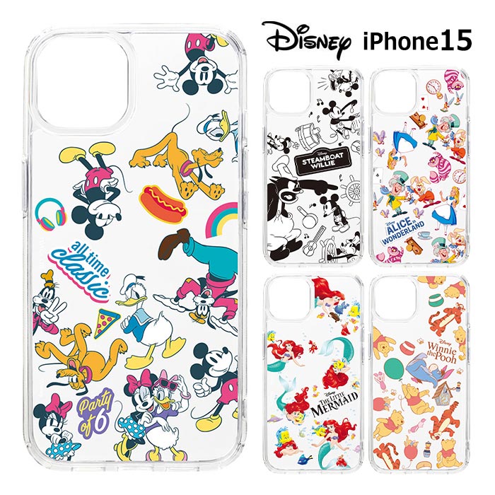 iPhone15 ディズニー ハイブリッド クリア ケース カバー ソフト ソフトケース クリアケース ハードケース かわいい ミッキーマウス 蒸気船ウィリー ミニー ドナルド アリス チェシャ猫 アリエル くまのプーさん アイフォン iphone 15 スマホカバー スマホケース pg-ma00854