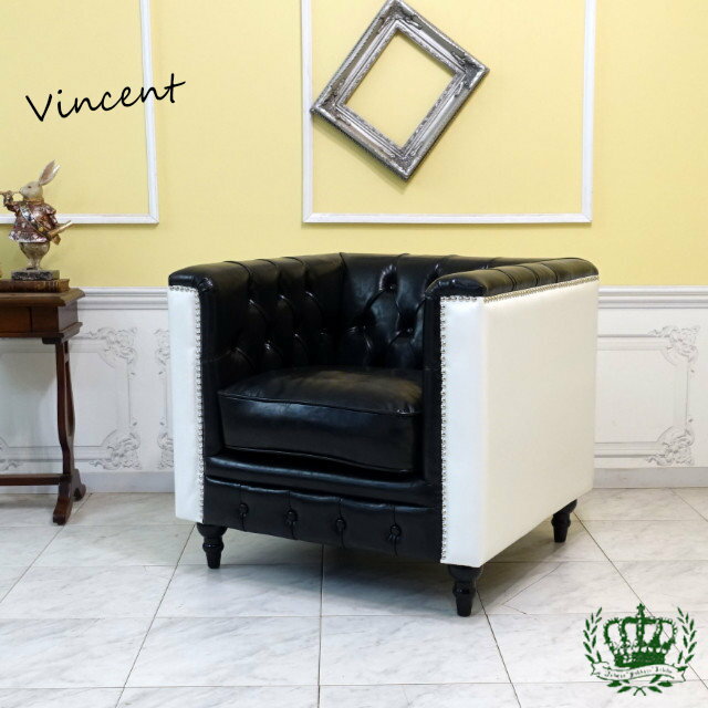 輸入家具 ソファー 一人用 ソファ チェスターフィールド ソファー 1人掛け ソファ 一人用 ホテル ソファ ラウンジ デザイナーズ 美容室 サロン 店舗什器 ビンテージ ヴィンテージ レトロ モダン 北欧 オシャレ モノクローム フェイクレザー PU 合皮 白黒 ブラック vm1p51p65k
