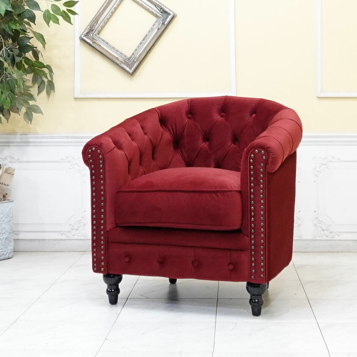 輸入家具 一人掛け コンパクトソファ デザイナーズ ソファ チェスターフィールド ソファー 1人用 シングルソファー おしゃれ かっこいい 男前 塩系インテリア カリフォルニア ブルックリン スタイル ヴィンテージ ベルベット ベロア 赤 レッド vl1f410k