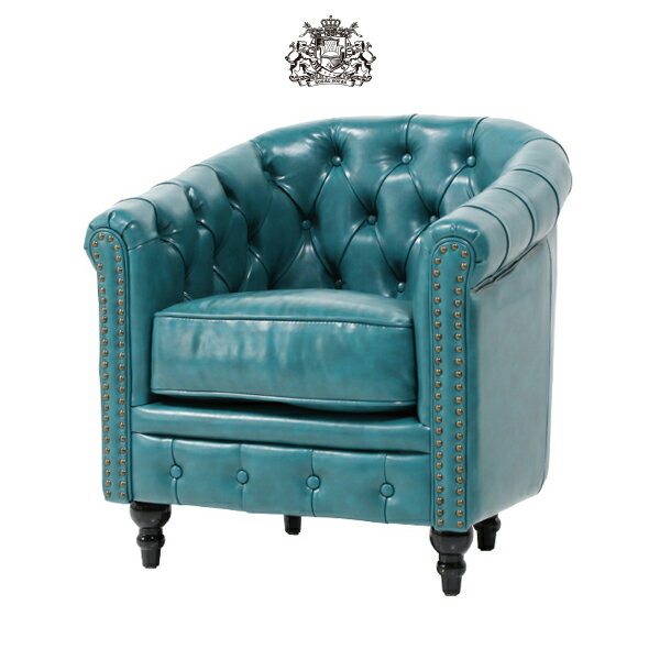 輸入家具 デザイナーズ そふぁ ソファー チェスターフィールドソファ(チェア) ソファーコンパクト 1人掛け 1人掛け 椅子 肘掛け ボタン タブチェア アンティーク ヴィンテージ レトロ チェスターフィールド 本革調 合成皮革 ターコイズグリーン VL1P70K