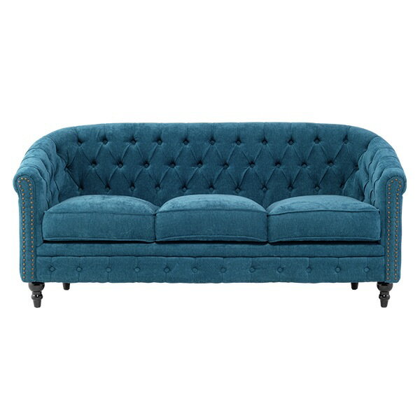 輸入家具 デザイナーズ そふぁ ソファー ボタン チェスターフィールド コンパクト ソファ 3人掛け 三人掛け アンティーク チェスターフィールド ソファー ヴィンテージ 布地 ファブリック ブルー アンティーク VL3F264K
