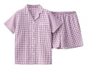 【送料無料】[Euyqs] 美しい パジャマ 綿100% 二重ガーゼ 半袖 ショーツ 上下セット ネグリジェレディース (#7 チェックパープル, L)