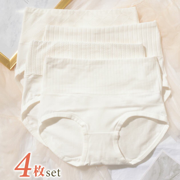 ⇒ 買い物ガイドはこちら■商品説明 お手持ちに1枚あると重宝する、清潔感のあるホワイトベースのショーツ。 安心感のあるハイウエスト設計で、気になるお腹や腰まわりをしっかりとカバーしてくれるアイテムです。 毎日の洗い替えにも重宝する4枚セットで、それぞれ異なるデザインをお楽しみいただけるのもうれしいところ。 リブやチェック柄ニット風など、表情豊かに仕上げています。 通気性にも優れているので、シーズンを問わず快適にお使いいただけるのもポイントです。 ■サイズ(cm) 【M】総丈24.8 / ウエスト幅27 【XL】総丈26.3 / ウエスト幅30 ■素材 生地: コットン(綿)95%, ポリウレタン5% / クロッチ: コットン(綿)68%,ポリエステル32% ■モデル情報 - ■原産国 MADE IN CHINA ■注意事項 ・撮影画像と実物の色合いが多少異なって見える場合がございます。 ・サイズは平置きでの採寸となりますので、測定方法によって多少の誤差が生じる場合がございます。 ・入荷・生産時期により、色味、サイズ、素材などが多少異なる場合がございます。 ・本製品は生産過程におきまして、生地を織る際の糸の継ぎ目や多少のほつれが生じることがあります。 ・お手頃な価格でご提供しているため、簡易包装となっており、保管・梱包時にシワが生じる場合がございます。 ・靴商品については、商品箱が破損している場合がございます。 上記内容について、あらかじめご了承くださいますようお願い申し上げます。