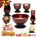 【P2倍★BLACK FRIDAY限定】【楽天1位】仏具セット 仏具 ミニ おりん付き ミニサイズ 想彩 ワインレッド 6点セット+チェリンゴールド【2.5寸 げんそう モダン仏具セット 銅器 真鍮】 花立 香炉 灯立 茶器 仏飯器 線香差 おりん セット 赤 レッド ゴールド 金色