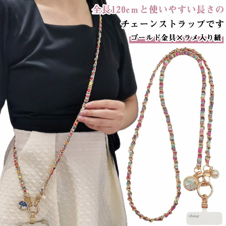 全長120cmと使いやすい長さのチェーンストラップです。【ゴールド金具×ラメ入り紐】ポケットのないファッションでも肩にかけるだけでスマホをサッと取り出せる。両手がふさがる旅行先でも重宝します。金具が回転するので紐が絡まりにくいのが特徴です。高級感のある華やかなデザインがシンプルなスタイリングにこなれ感をプラス。フック式で簡単に付け外しOK!スマートフォン全機種対応 iPhone以外のスマホでも使えます。 サイズ 長さ120cm サイズについての説明 長さ120cm 太さ8mm 素材 金属、ポリエステル 色 タイプ1 タイプ2 タイプ3 タイプ4 タイプ5 備考 ●サイズ詳細等の測り方はスタッフ間で統一、徹底はしておりますが、実寸は商品によって若干の誤差(1cm~3cm )がある場合がございますので、予めご了承ください。 ●製造ロットにより、細部形状の違いや、同色でも色味に多少の誤差が生じます。 ●パッケージは改良のため予告なく仕様を変更する場合があります。 ▼商品の色は、撮影時の光や、お客様のモニターの色具合などにより、実際の商品と異なる場合がございます。あらかじめ、ご了承ください。 ▼生地の特性上、やや匂いが強く感じられるものもございます。数日のご使用や陰干しなどで気になる匂いはほとんど感じられなくなります。 ▼同じ商品でも生産時期により形やサイズ、カラーに多少の誤差が生じる場合もございます。 ▼他店舗でも在庫を共有して販売をしている為、受注後欠品となる場合もございます。予め、ご了承お願い申し上げます。 ▼出荷前に全て検品を行っておりますが、万が一商品に不具合があった場合は、お問い合わせフォームまたはメールよりご連絡頂けます様お願い申し上げます。速やかに対応致しますのでご安心ください。
