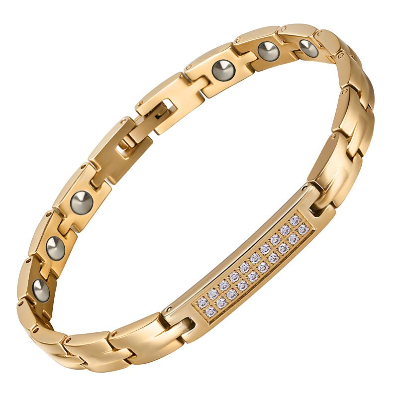 再入荷済!【即出荷 日本限定 販売全国送料無料】オリジナル仕様 欧米デザイン SALE ☆ ジルコニア付き18金メッキチタンゲルマニウムブレスレット 軽量 男女兼用 肩こり 防電磁波 アクセサリー 高級 おしゃれ ユニセックスデザイン AZ-074 父の日