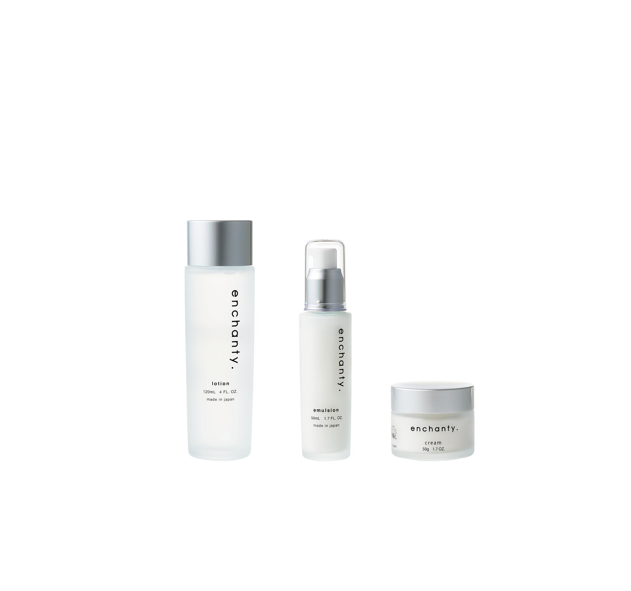 エンチャンティー 公式 コスメセット ローション 化粧水 エマルジョン 美容乳液 フェイスクリーム スキンケアセット 化粧品セット 日本製 高級 天然成分 植物由来 スキンローション ハリ ツヤ くすみ スキンクリーム 大人ニキビ 30代 40代 50代 贈り物 基礎化粧品 アトピー