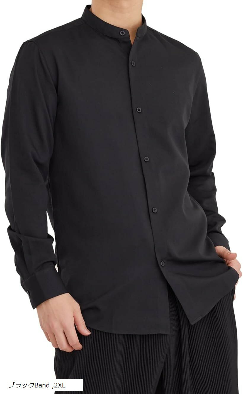 ラッキーチャーム シャツ メンズ 長袖 レギュラーシャツ カジュアル ストレッチ メンズシャツ 無地 スリムフィット (ブラックBand, 2XL)
