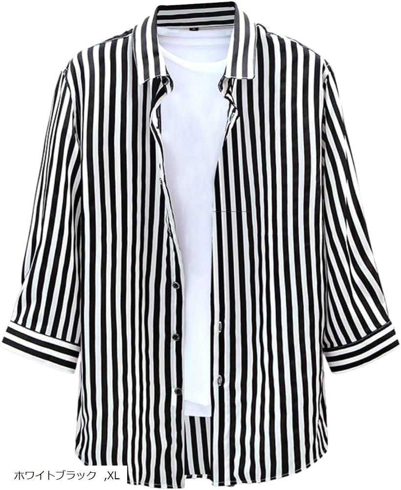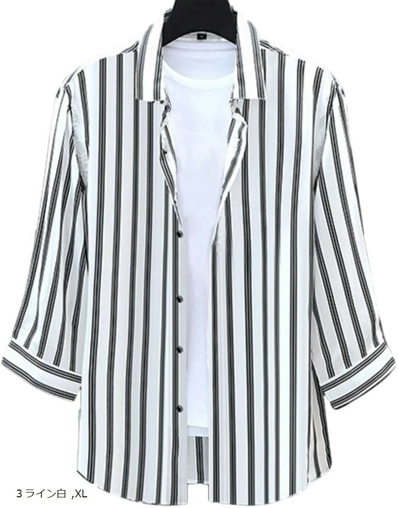 ラッキーチャーム XL 白黒 7分袖 シャツ 薄手 ストライプ カジュアルシャツ メンズ 長袖 七分袖 夏 (ホワイトブラック, XL)