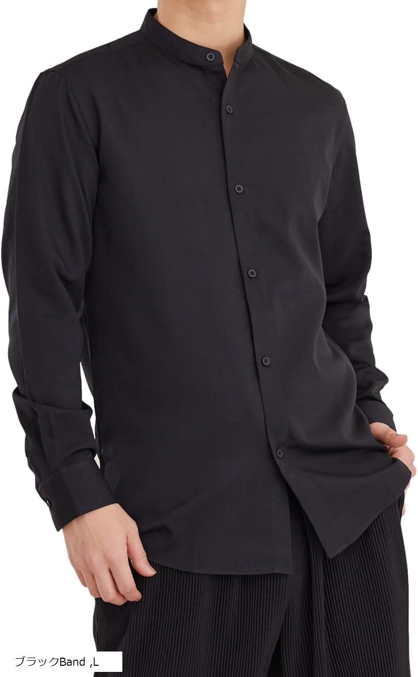 ラッキーチャーム シャツ メンズ 長袖 レギュラーシャツ カジュアル ストレッチ メンズシャツ 無地 スリムフィット (ブラックBand, L)
