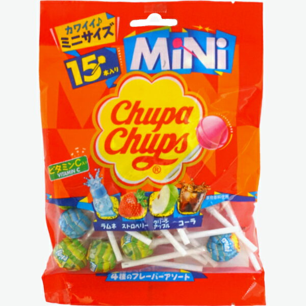 小さくてかわいい『チュッパチャプス MiNi(ミニ)』が15個入ったアソートパック! 食べやすいサイズで、ちょっとした隙間時間に手軽に楽しめるチュッパチャプス。 ※フレーバーは時期によって異なりますので、画像と異なる可能性がございます。 あらかじめご了承いただくか、ご注文前にお問い合わせください。 商品サイズ 1個あたり:約150mm×25mm×210mm 1袋あたり:約385mm×45mm×280mm