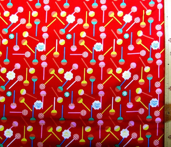 ★残りわずかです(廃番になりました) キャラクター 生地 布 チュッパ チャプス ( 赤系 ) 柄番号4 ( お菓子シリーズ ) オックス ( 綿100% ) 生地幅−約108cm ( お菓子シリーズ チュッパチャプス Chupa Chups )