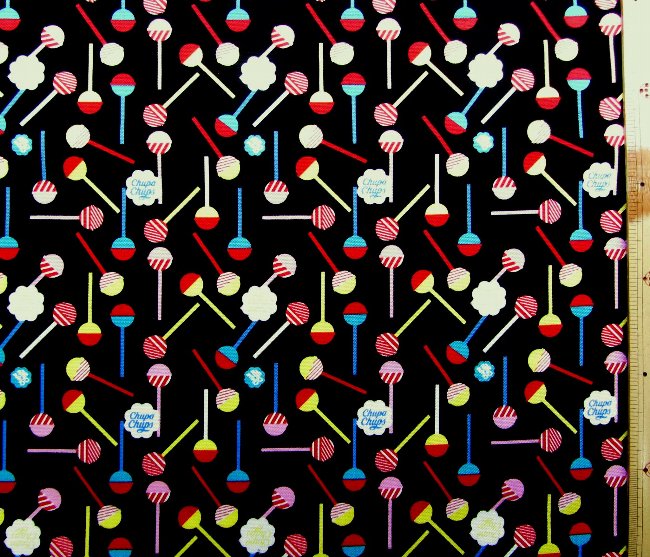 ★残りわずかです(廃番になりました) キャラクター 生地 布 チュッパ チャプス ( 黒系 ) 柄番号4 ( お菓子シリーズ ) オックス ( 綿100% ) 生地幅−約108cm ( お菓子シリーズ チュッパチャプス Chupa Chups )