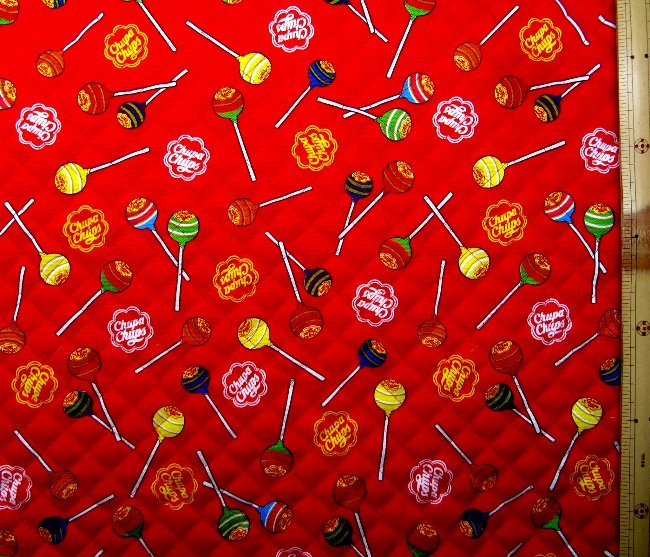 Q- キルティング 生地 布 チュッパ チャプス( 赤系 ) 柄番号4 キルティング生地 キルト 生地幅−約104cm 表地−オックス ( お菓子シリーズ チュッパチャプス Chupa Chups ロリポップ 駄菓子 男の子 女の子 )