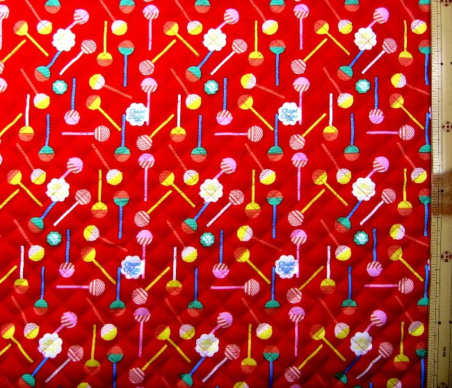 <★廃番のため残りわずかとなりました> Q- キルティング 生地 布 チュッパ チャプス( 赤系 ) 柄番号3 キルティング生地 キルト 生地幅−約104cm 表地−オックス ( お菓子シリーズ チュッパチャプス Chupa Chups ロリポップ 駄菓子 )