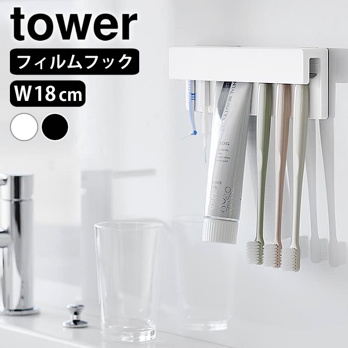 歯ブラシ ホルダー フィルムフック差し込み式歯ブラシ&チューブホルダー タワー W18 tower 歯ブラシスタンド 浮かせる チューブ 洗面所 省スペース 小物収納 タワーシリーズ 白 黒 歯磨き粉 山崎実業 yamazaki ヤマジツ 1497 1498