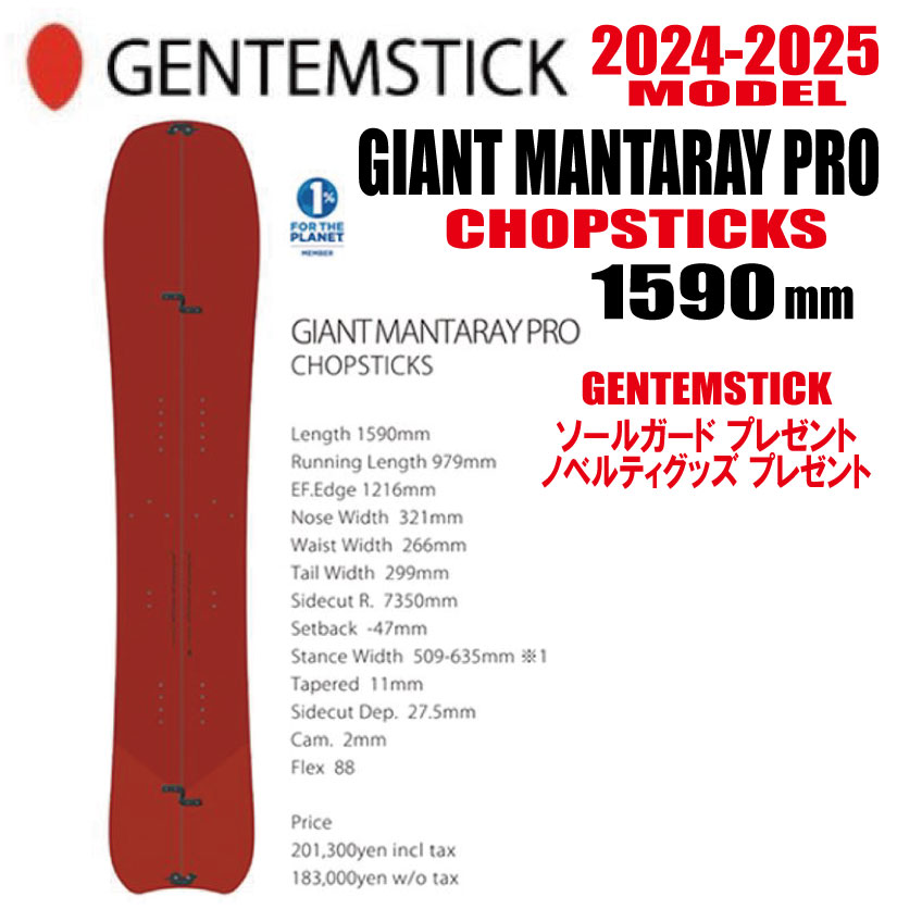 ★24-25モデル★GENTEMSTICK(ゲンテンスティック) GIANT MANTARAY 159 CHOPSTICKS PRO サイズ:159【チューンナップ・ショートビス・オリジナルグッズ プレゼント】【送料無料】(※北海道・沖縄/離島は送料別)