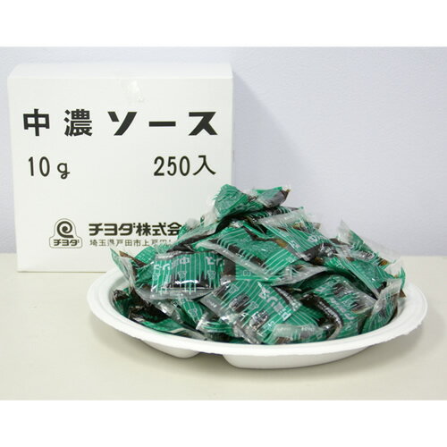 品名 中濃ソース 容量 10gx250入 原材料名 野菜、果実(りんご、トマト、たまねぎ、その他)、糖類(砂糖、ぶどう糖果糖液糖)、醸造酢、食塩、コーンスターチ、アミノ酸液、香辛料、カラメル色素、(原材料の一部に大豆を含む) 販売者 チヨダ株式会社