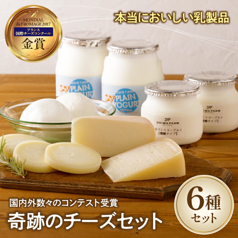 特産品説明 名称 【ふるさと納税】【国内外コンテスト受賞!】奇跡のチーズセット 内容量 ・モッツァレラ100g×2 ・トーマダイワ100g×1 ・ロビダイワ100g×1 ・プロボローネ約90g×1(約30g前後×3枚) ・プレーンヨーグルト450g×2 ・ヨーグルト微糖タイプ250g×2 原産地:小林市 賞味期限 ・モッツァレラ:10日 ・トーマダイワ:60日 ・ロビダイワ:30日 ・プロボローネ:30日 ・プレーンヨーグルト:14日 ・ヨーグルト微糖タイプ:14日 配送温度帯 冷蔵 説明 【国内外コンテスト受賞!】 国内外のコンテストで最優秀賞等を数々の受賞歴があることから、奇跡のチーズと称賛されているダイワファームのチーズ。 自社牧場の新鮮な牛乳から作った全て手作りのナチュラルチーズとヨーグルトをセットにしてお届けします。 注意事項/その他 ※ご注文順に順次発送いたします。 ※お届けまで、1~2か月ほどお時間をいただきます。 ※配送日の指定はできませんので予めご了承ください。 発送期日 準備が出来次第、順次発送予定 提供事業者 ダイワファーム ・ふるさと納税よくある質問はこちら ・寄付申込みのキャンセル、返礼品の変更・返品はできません。あらかじめご了承ください。【ふるさと納税】【国内外コンテスト受賞!】奇跡のチーズセット